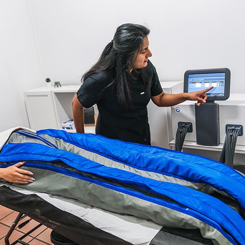 La presoterapia es un tratamiento de compresión secuencial que activa el sistema linfático para drenar líquidos, reducir inflamación y mejorar la circulación.